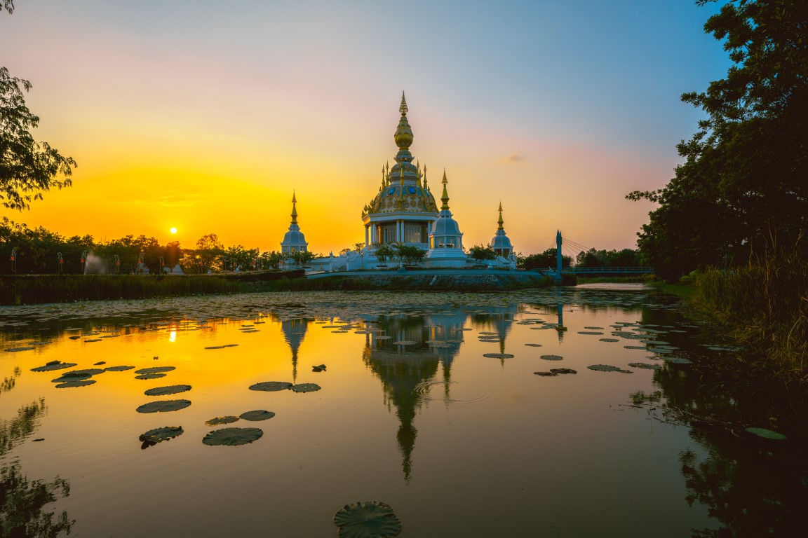โดยรอบๆ บริเวณวัดก็จะมีทุ่งนาสีเขียวล้อมรอบ มีสะพานศิลอุดมทรัพย์ เป็นสะพานแขวนไว้ให้เดิน รวมไปถึง วิหารพระอวโลกิเตศวร มณพปองค์ปฐม สวนนรก รูปปั้นพญานาค แท่นแว่นฟ้าจุฬามณีและท่านาคเจดีย์ศรีนาคิน เป็นต้น ถือเป็นวัดที่สร้างสิ่งปลูกสร้างต่างๆ ที่สอดแทรกปริศนาธรรมได้อย่างสวยสดงดงาม