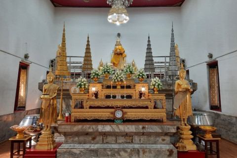 ซึ่งเรียกกันว่า พวกบ้านแหลม จนต่อมาก็กลายมาเป็น หมู่บ้านแหลม โดยได้มีการบูรณะวัดแห่งนี้และเรียกชื่อใหม่ว่า วัดบ้านแหลม โดยวัดนี้ได้รับวิสุงคามสีมา เมื่อประมาณปี พ.ศ.2400 มากันที่ หลวงพ่อบ้านแหลม บ้าง เรียกได้ว่าเป็นพระพุทธรูปที่ศักดิ์สิทธิ์ ที่ชาวบ้านให้ความเคารพศรัทธาอย่างมาก ส่วนใหญ่จะนิยมไปไหว้ขอพรในเรื่องของโรคภัยไข้เจ็บ แคล้วคลาดปลอดภัย"